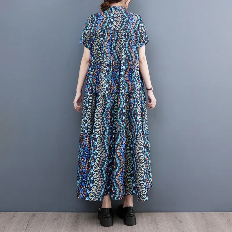 衣都精品- 新款大碼寬鬆顯瘦洋氣短袖印花拼接連衣裙