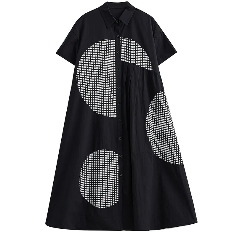 衣都精品- 新款大碼拼接休閒簡約短袖連衣裙