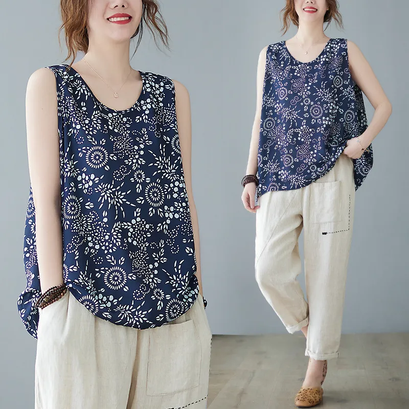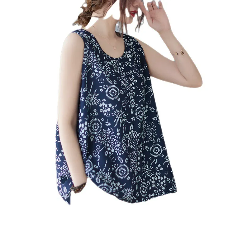 衣都精品- 新款文藝印花青花瓷大碼背心上衣