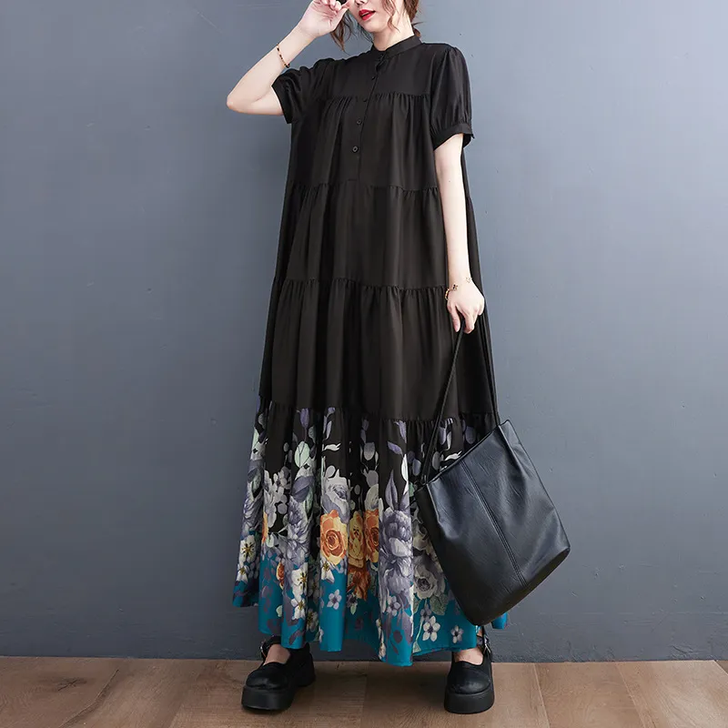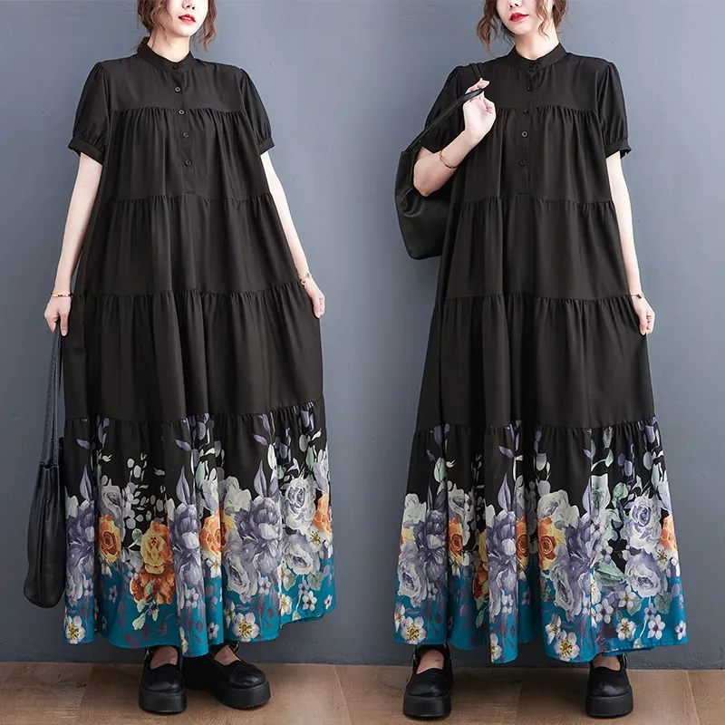 衣都精品- 新款短袖寬鬆大碼時尚印花顯瘦連衣裙