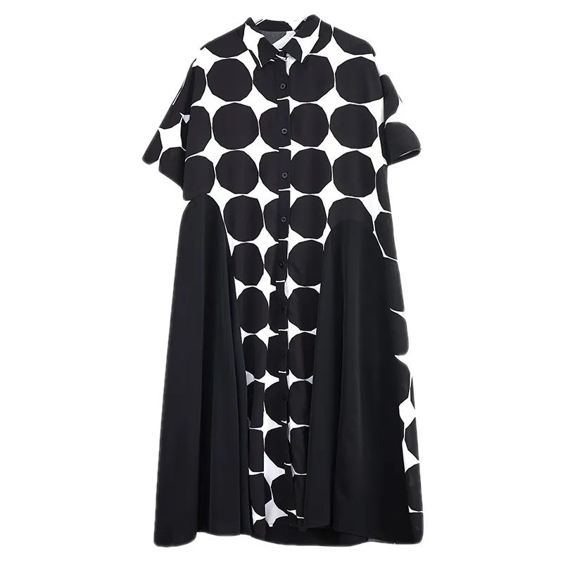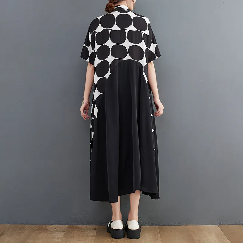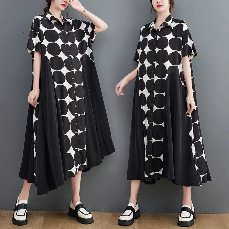 衣都精品- 新款復古短袖時尚波點拼接大碼連衣裙