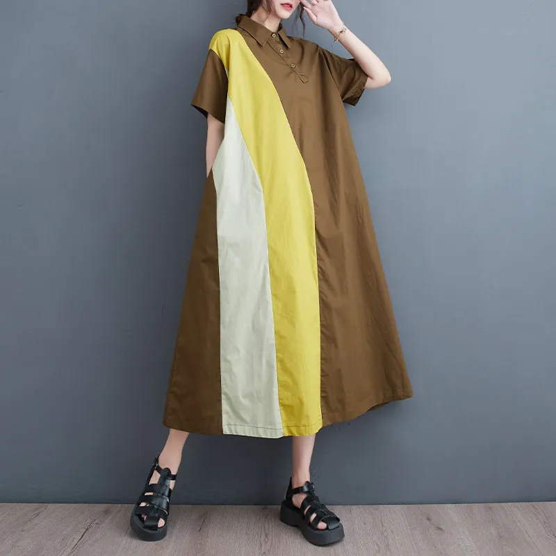 衣都精品- 新款寬鬆大碼拼接休閒簡約連衣裙