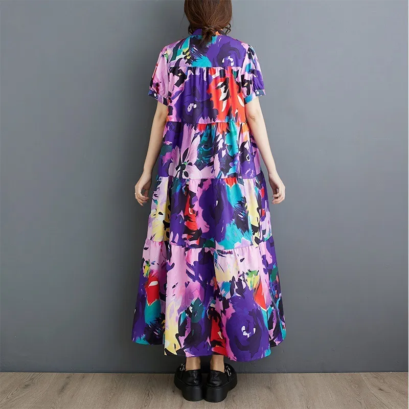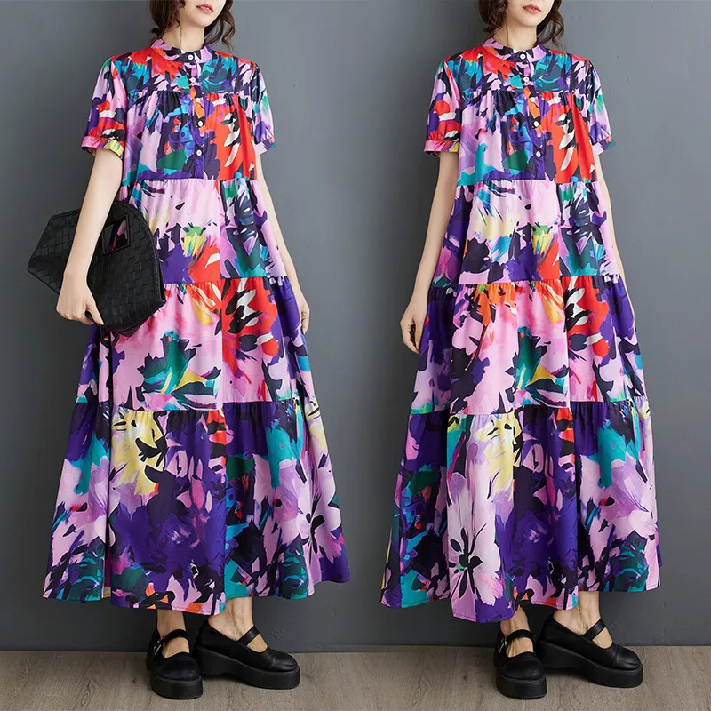 衣都精品- 新款寬鬆顯瘦洋氣短袖印花中長款連衣裙