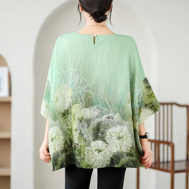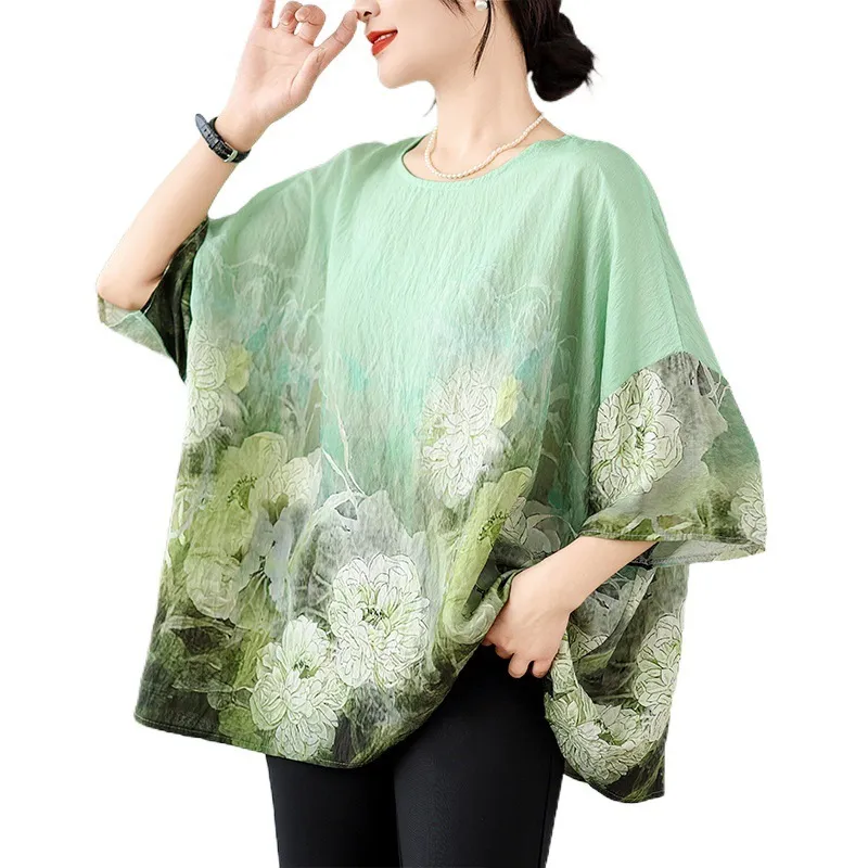 衣都精品- 新款民族風蝙蝠袖寬鬆大碼圓領上衣