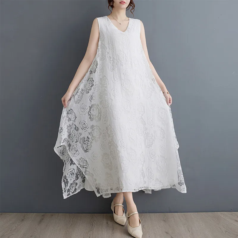 衣都精品- 新款文藝氣質鏤空花朵不規則連衣裙
