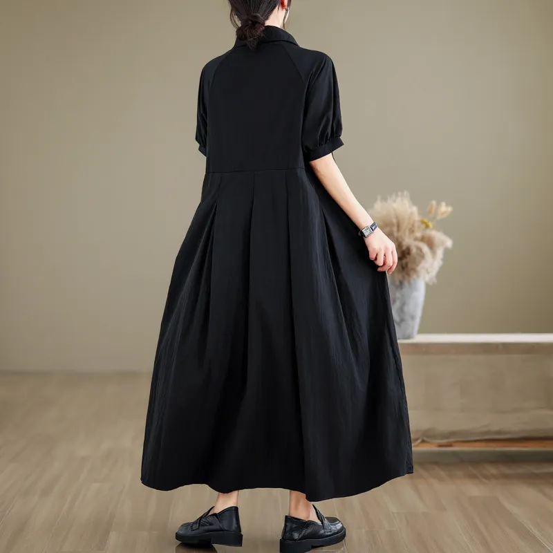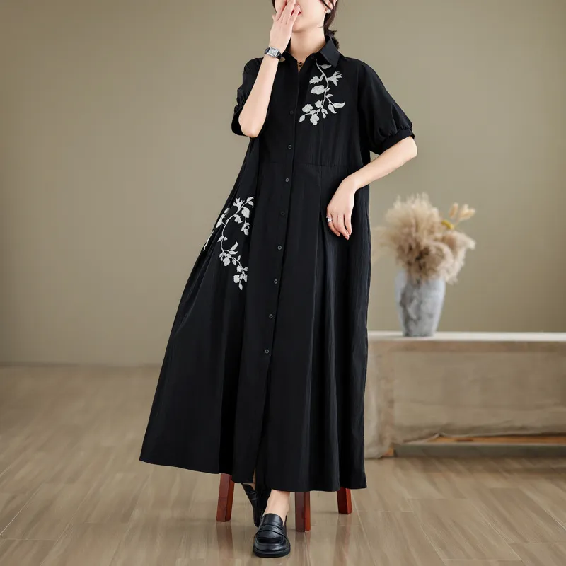 衣都精品- 新款刺繡高腰顯瘦大擺短袖連衣裙