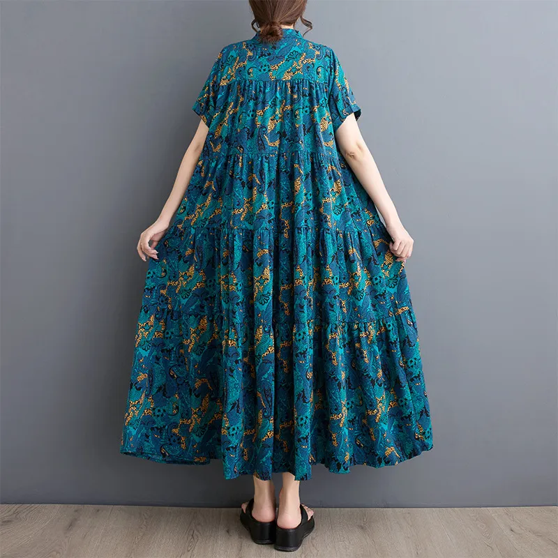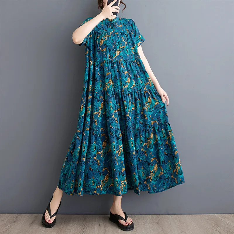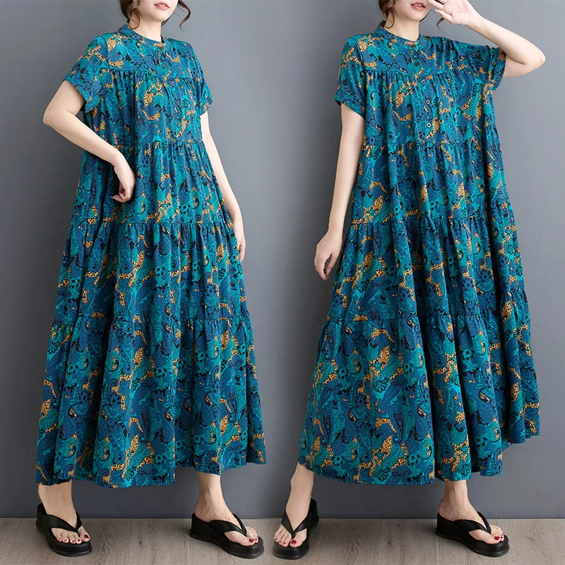 衣都精品- 新款刺繡高腰顯瘦大擺短袖連衣裙