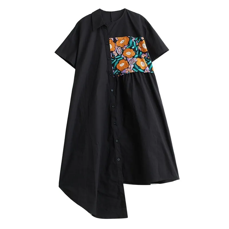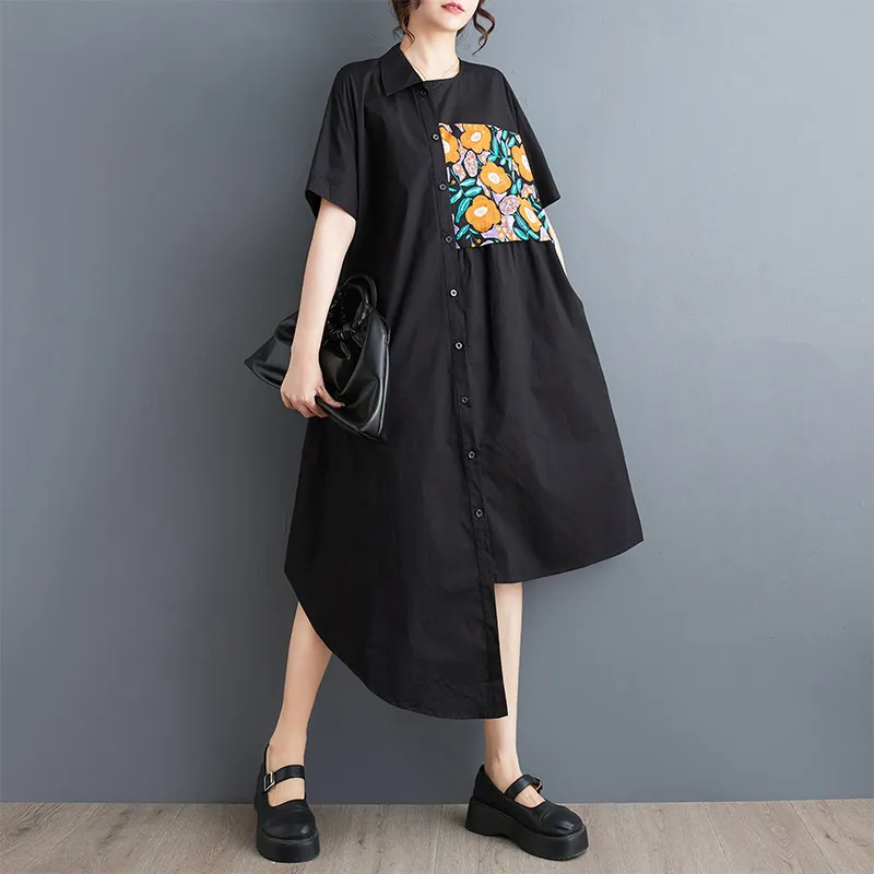 衣都精品- 新款寬鬆大碼印花拼接休閒甜美連衣裙