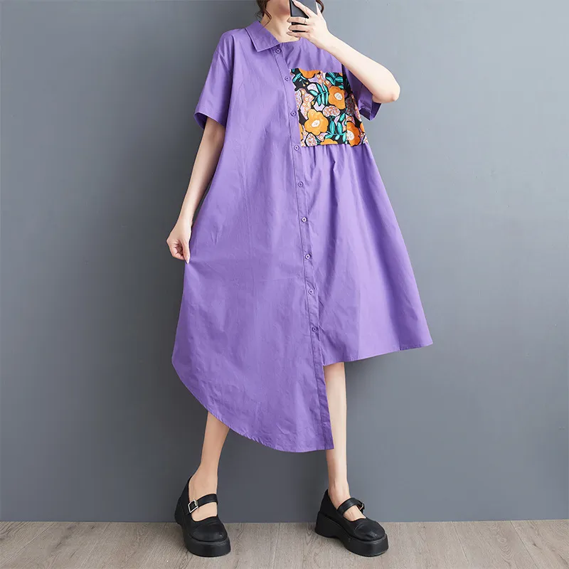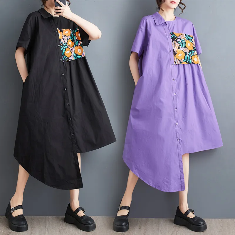 衣都精品- 新款寬鬆大碼印花拼接休閒甜美連衣裙