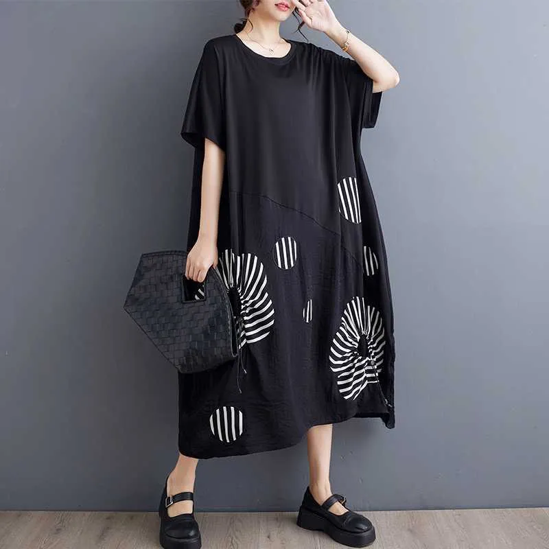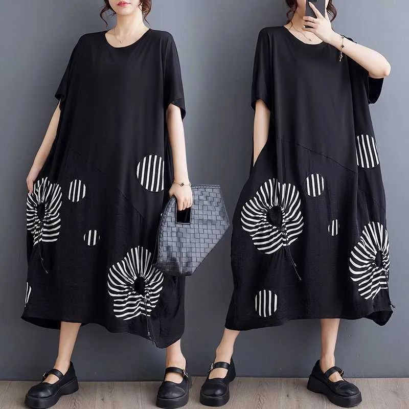 衣都精品- 新款文藝大碼寬鬆顯瘦洋氣短袖印花連衣裙