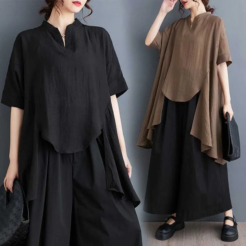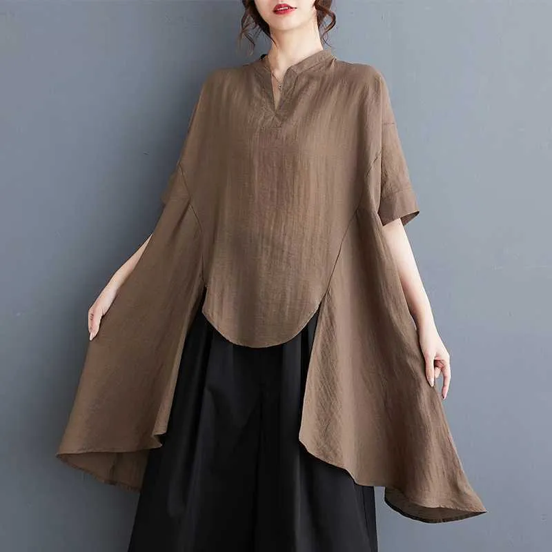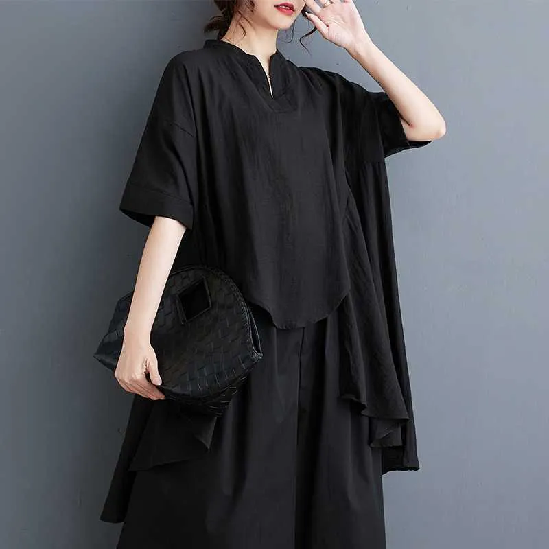 衣都精品- 新款韓版寬鬆大碼純色個性不規則上衣