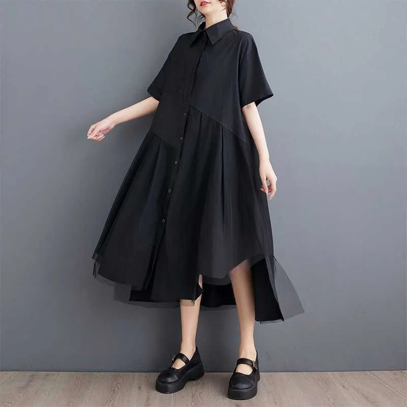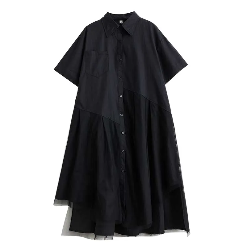 衣都精品- 新款韓版大碼網紗拼接寬鬆時尚不規則連衣裙
