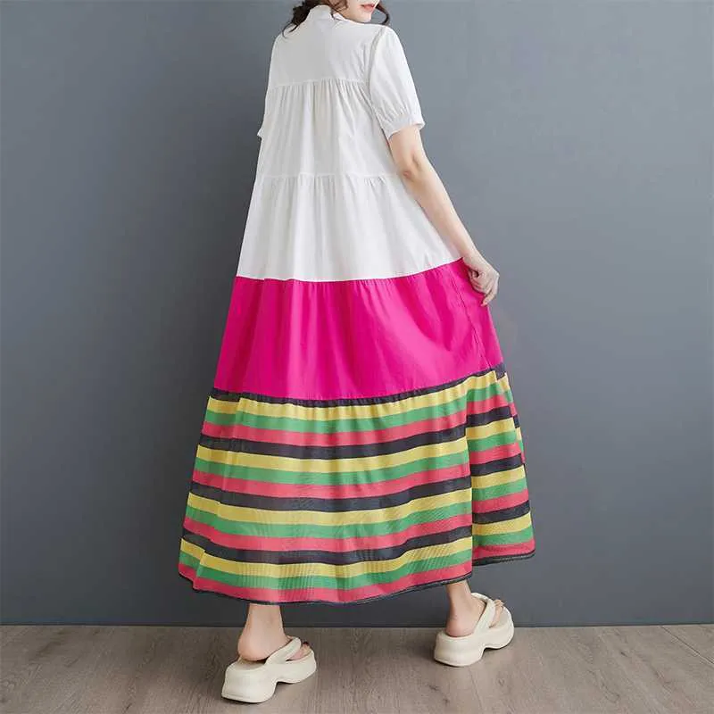 衣都精品- 新款韓版大碼寬鬆POLO領線條洋氣連衣裙
