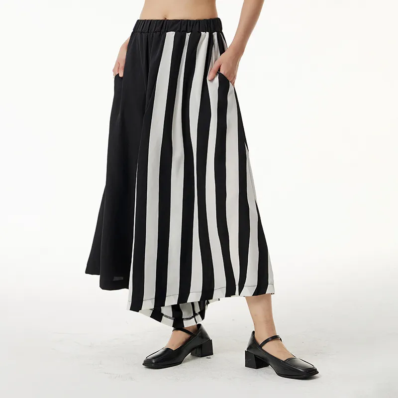 衣都精品- 新款條紋拼接休閒寬鬆顯瘦闊腿褲