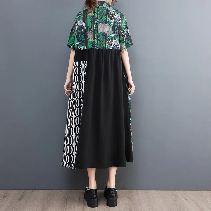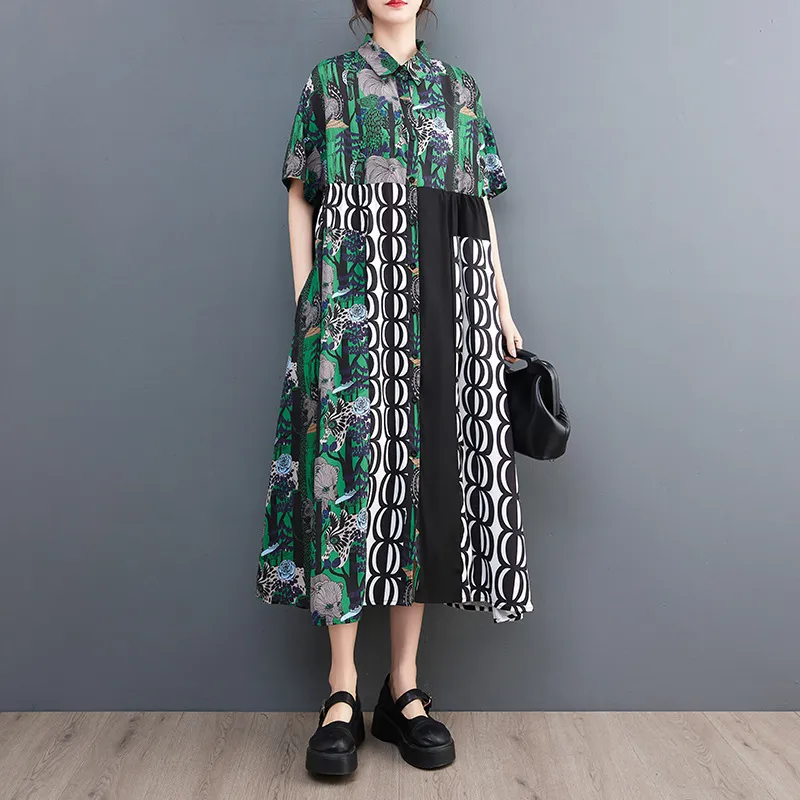 衣都精品- 新款韓版文藝大碼寬鬆顯瘦印花拼接連衣裙