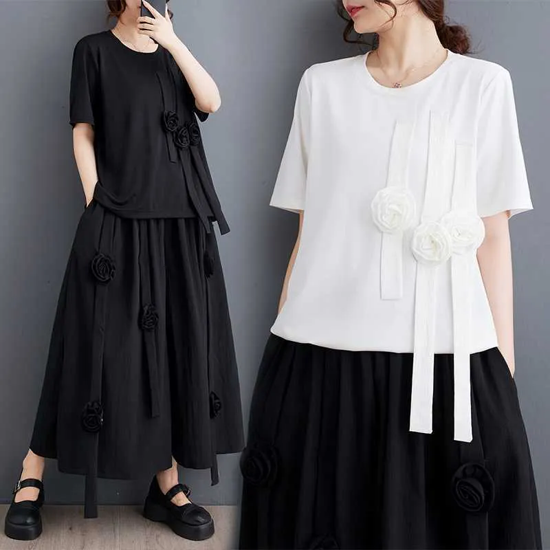 衣都精品- 新款韓版大碼小眾設計立體花朵飄帶時尚上衣