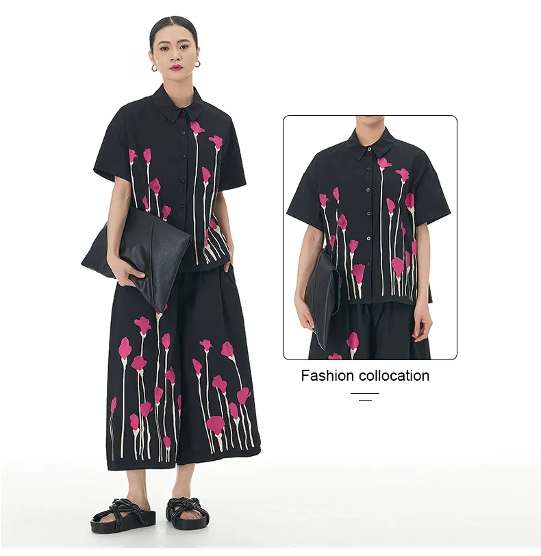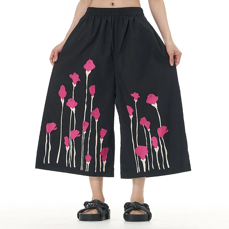 衣都精品- 新款時尚寬鬆顯瘦大碼印花闊腿褲