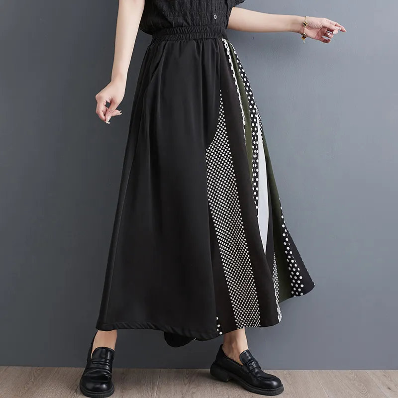 衣都精品- 新款韓版時尚拼色顯瘦氣質九分闊腿褲