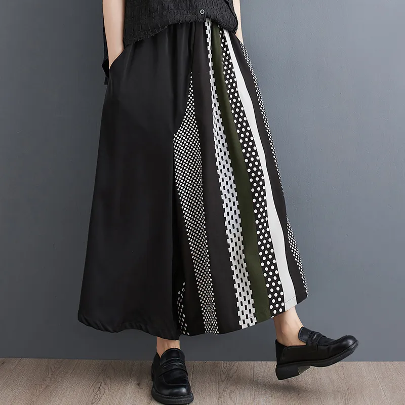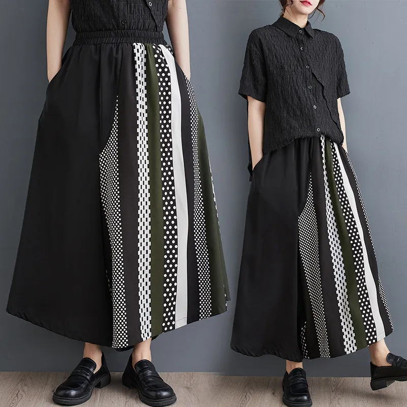 衣都精品- 新款寬鬆大碼鬆緊腰九分闊腿褲