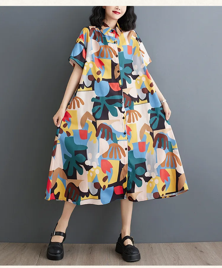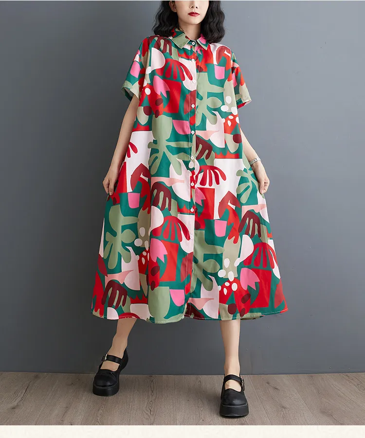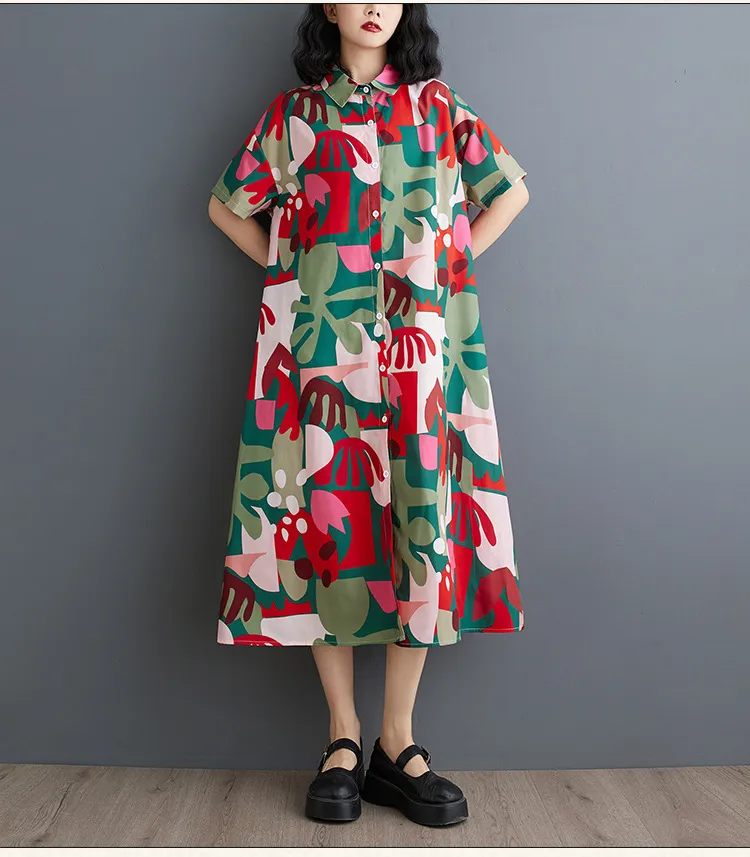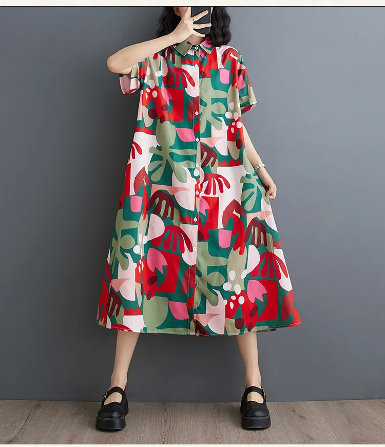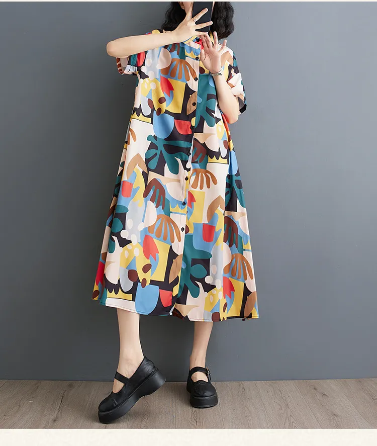 衣都精品- 新款韓版寬鬆大碼時尚印花顯瘦短袖連衣裙