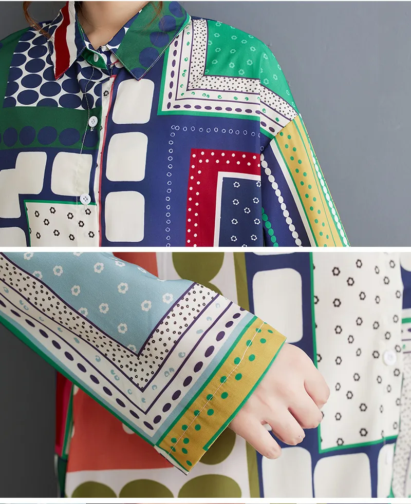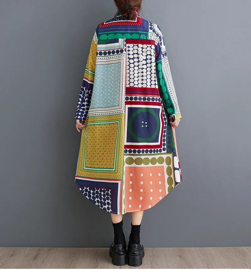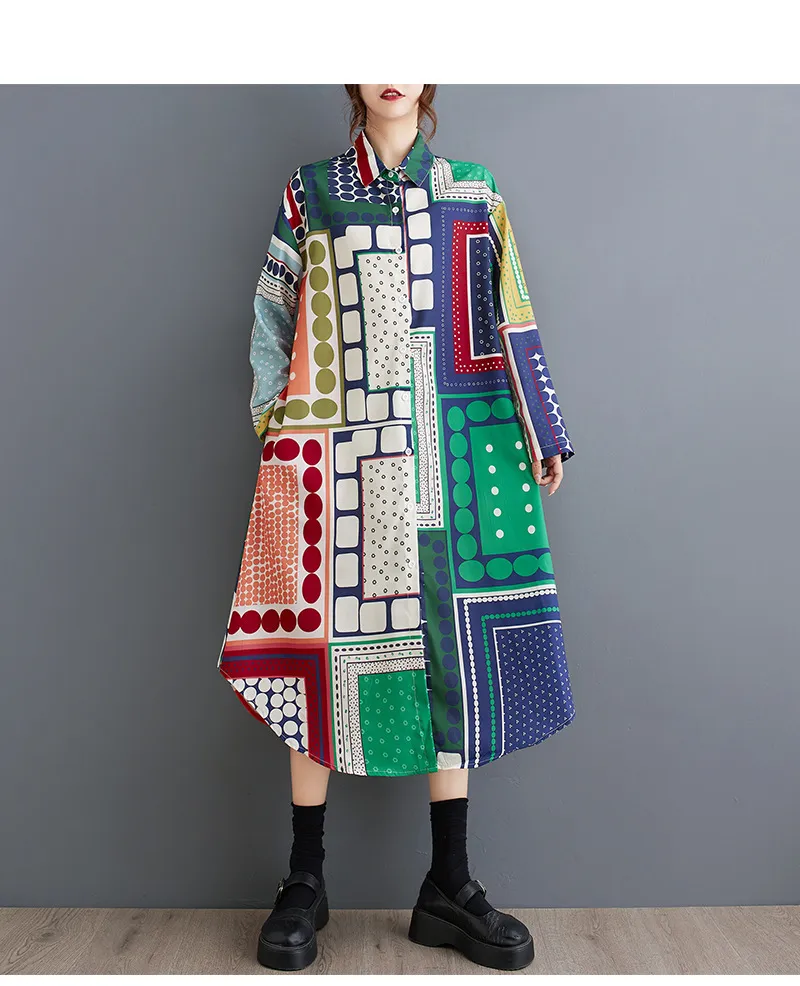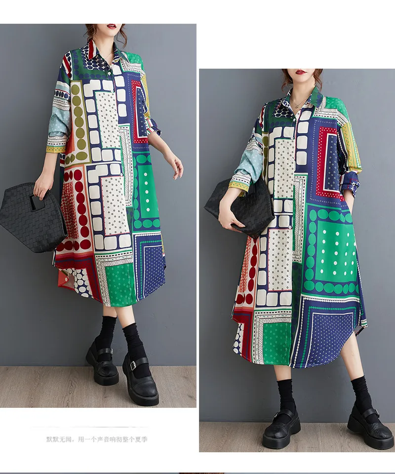 衣都精品- 新款時尚印花寬鬆大碼不規則長袖連衣裙