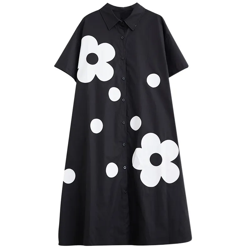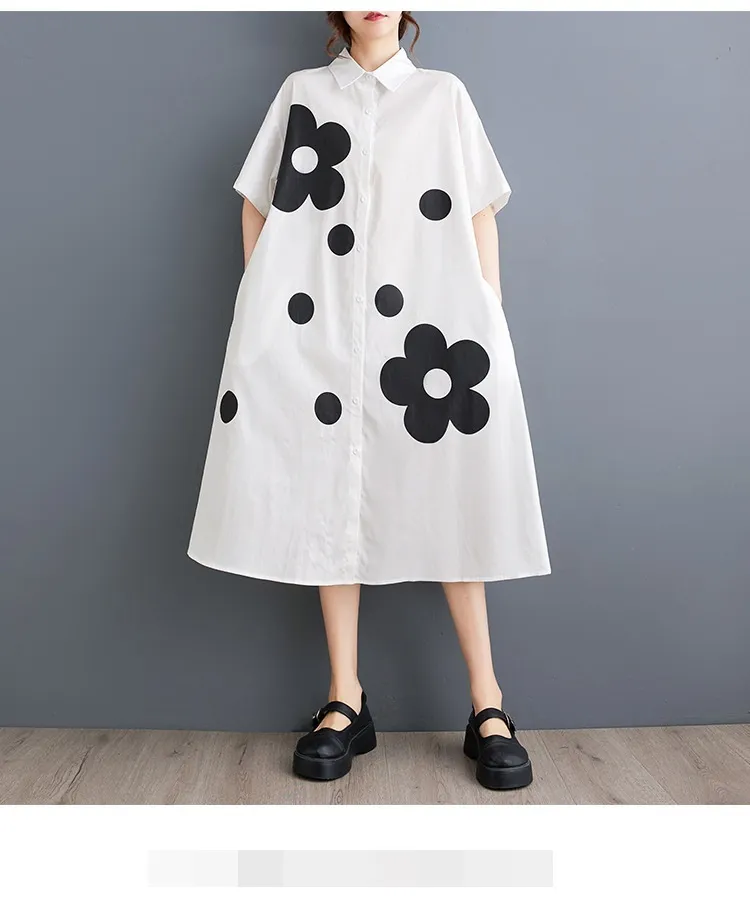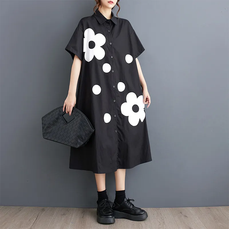 衣都精品- 新款時尚印花寬鬆大碼百搭休閒連衣裙