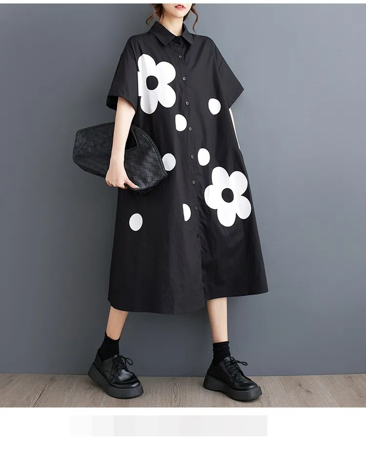 衣都精品- 新款韓版寬鬆大碼時尚印花顯瘦短袖連衣裙