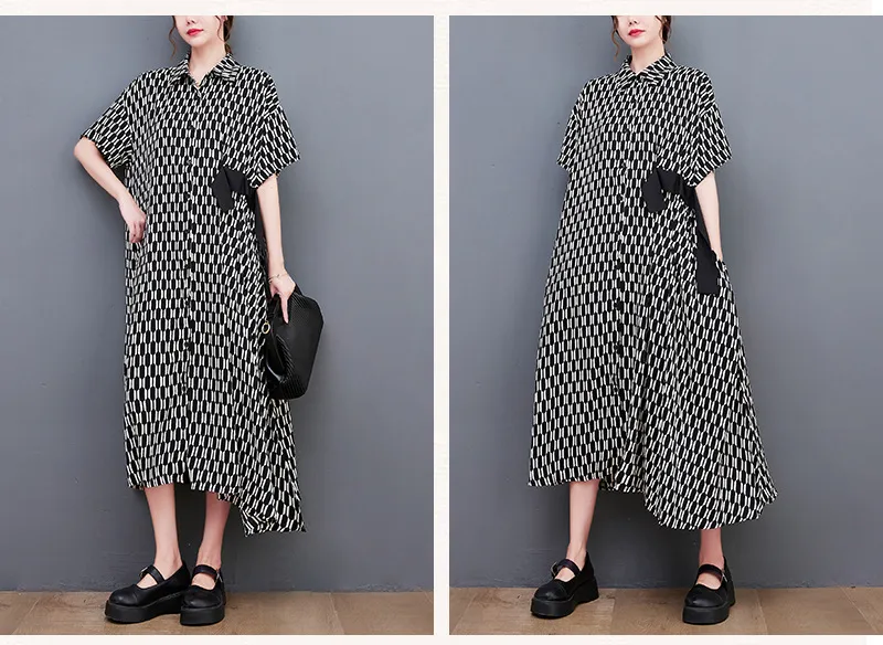 衣都精品- 新款時尚顯瘦開叉休閒印花大碼連衣裙