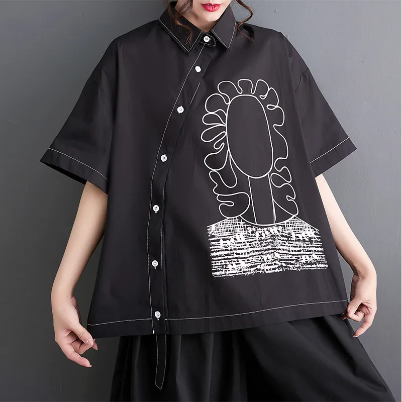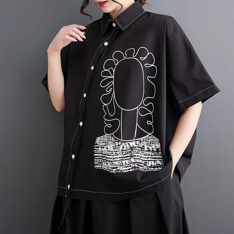 衣都精品- 新款寬鬆大碼印花拼接休閒簡約甜美上衣