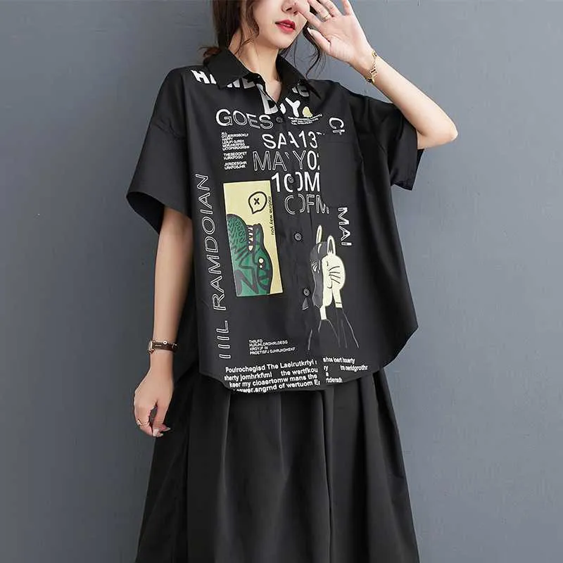 衣都精品- 新款韓版大碼寬鬆個性暗黑風不規則上衣