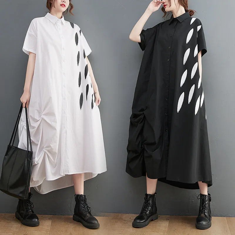衣都精品- 新款韓版寬鬆大碼印花短袖氣質連衣裙