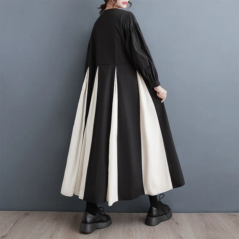 衣都精品- 新款韓版泡泡袖黑白拼接雙排扣連衣裙
