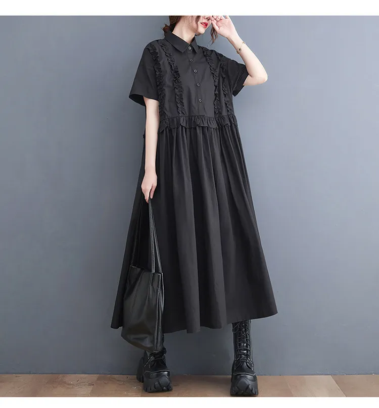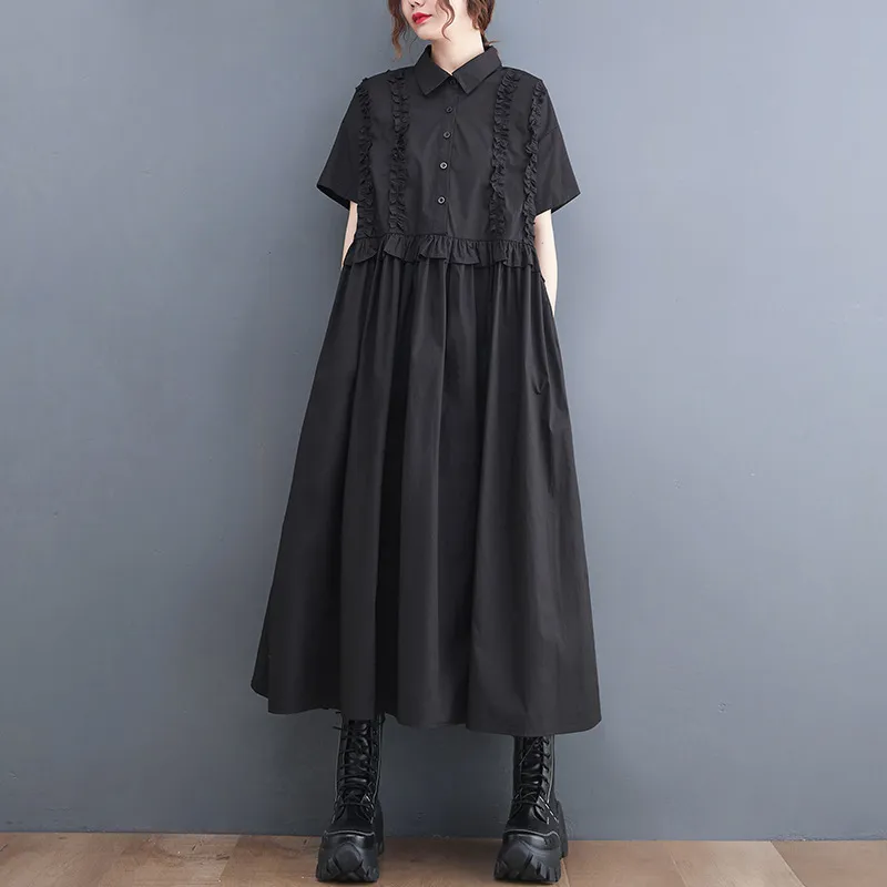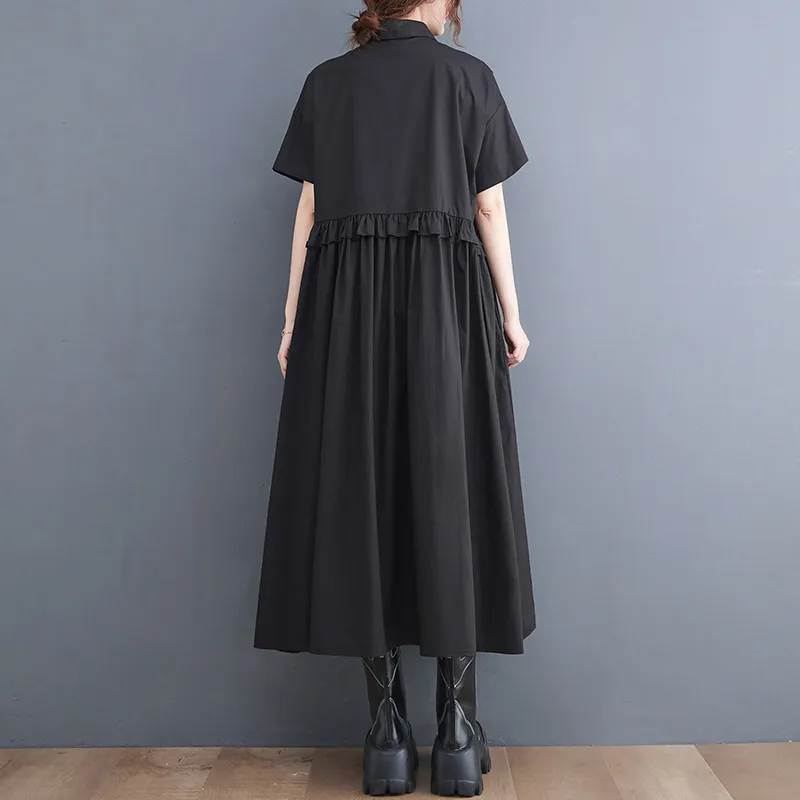 衣都精品- 新款文藝洋氣寬鬆顯瘦短袖收腰拼接連衣裙