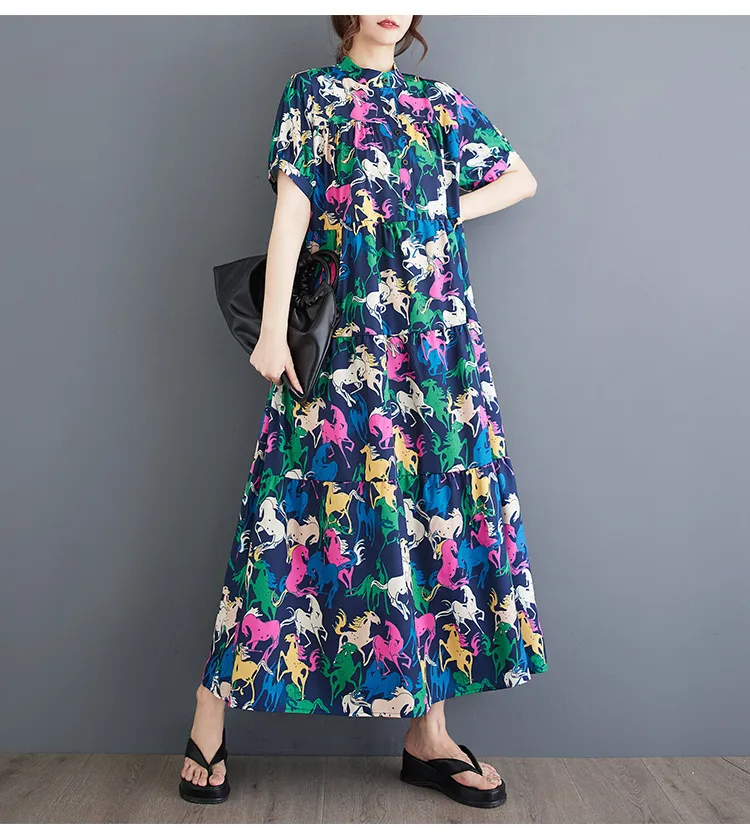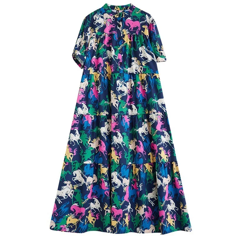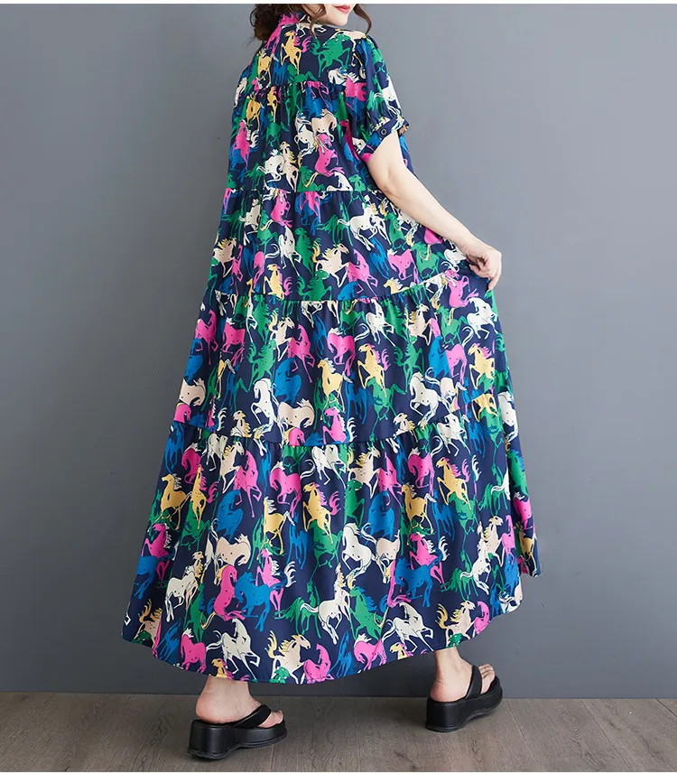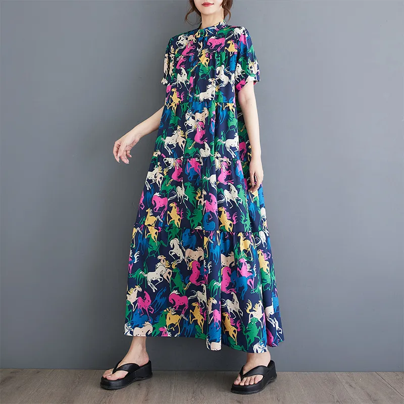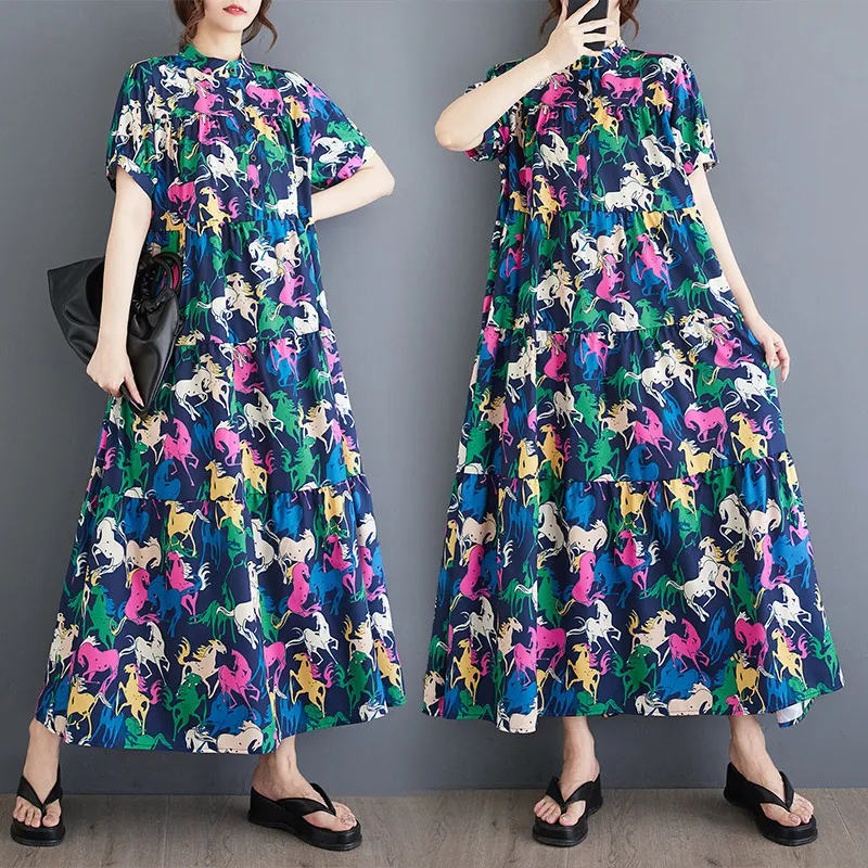 衣都精品- 新款短袖寬鬆大碼時尚印花顯瘦連衣裙