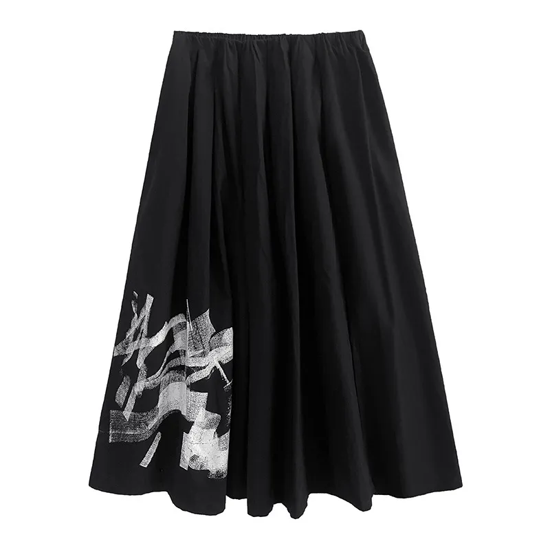 衣都精品- 新款復古寬鬆玫瑰刺繡立領上衣+褶皺拼接半身裙套裝
