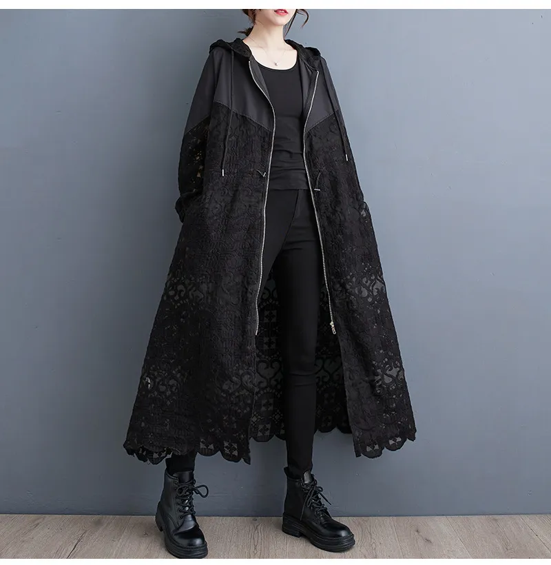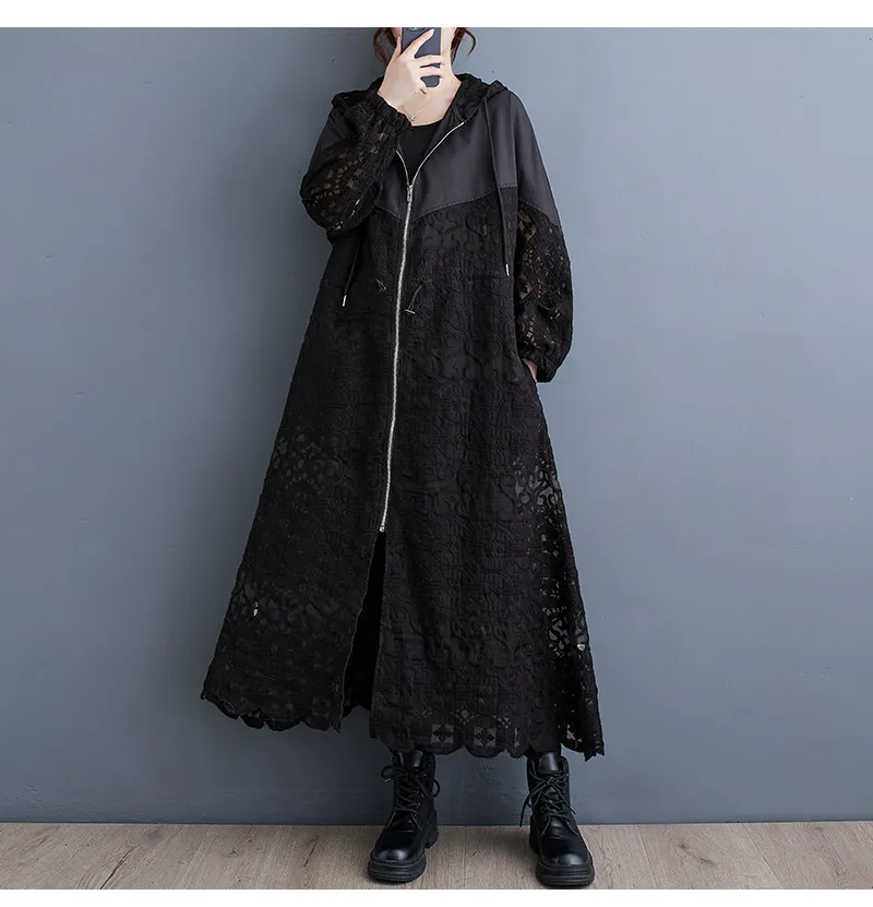 衣都精品- 新款時尚潮流拼接鏤空連帽大碼寬鬆外套