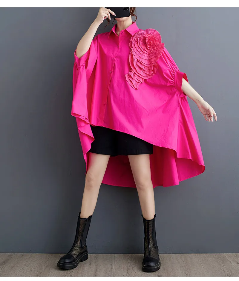 衣都精品- 新款寬鬆不規則設計感蝙蝠袖立體上衣