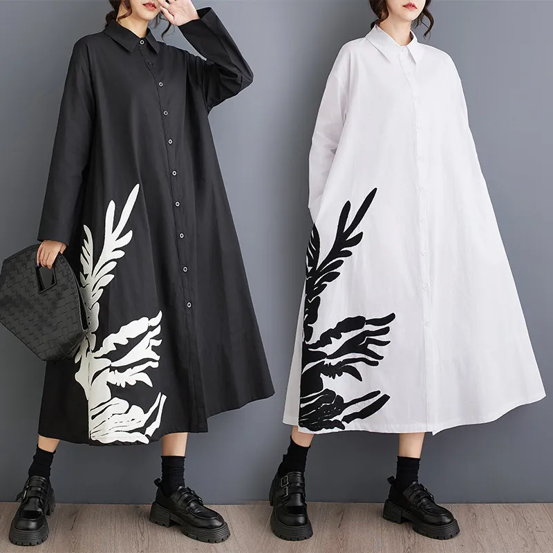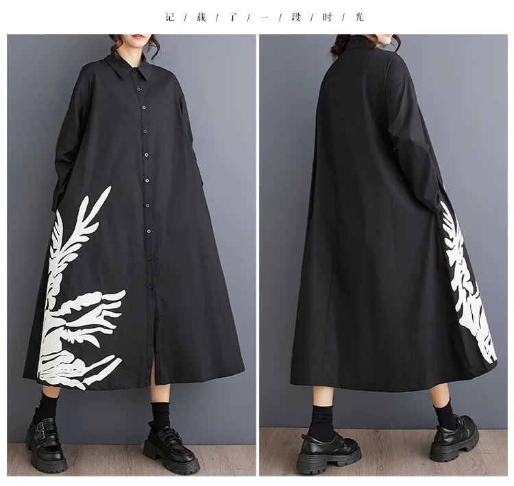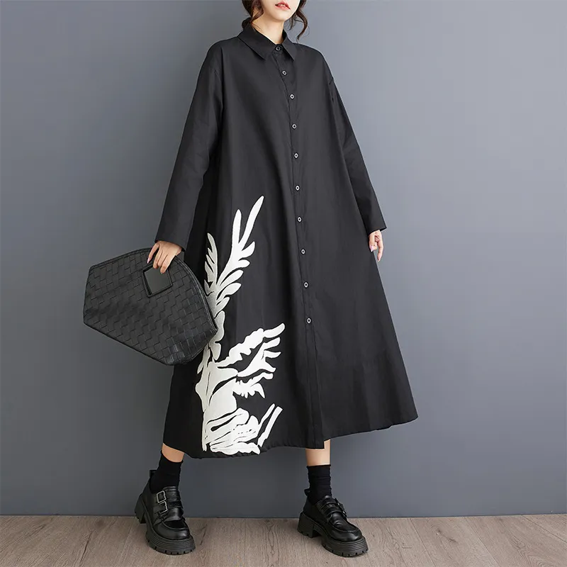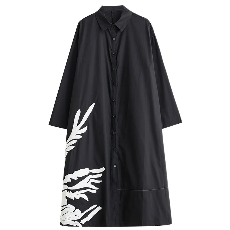 衣都精品- 新款寬鬆文藝時尚定位印花拼接立領連衣裙