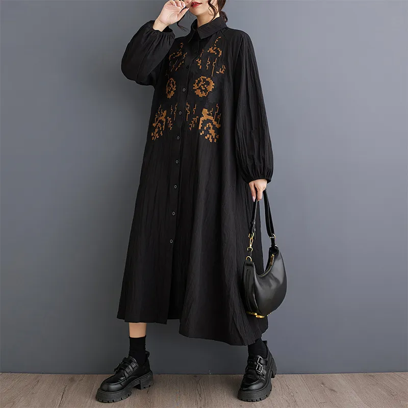 衣都精品- 新款寬鬆大碼拼接休閒簡約繡花甜美連衣裙
