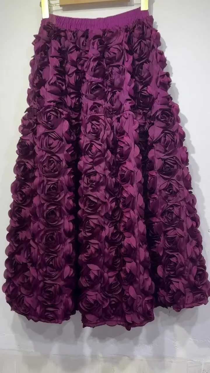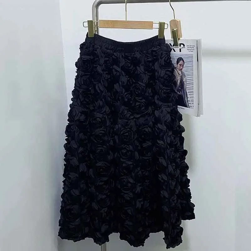 衣都精品- 新款法式重工立體花朵鬆緊腰半身裙