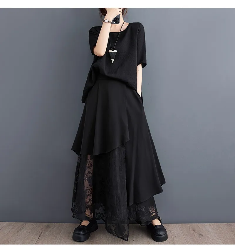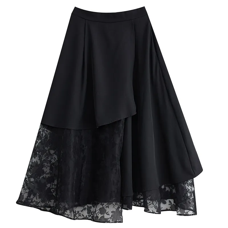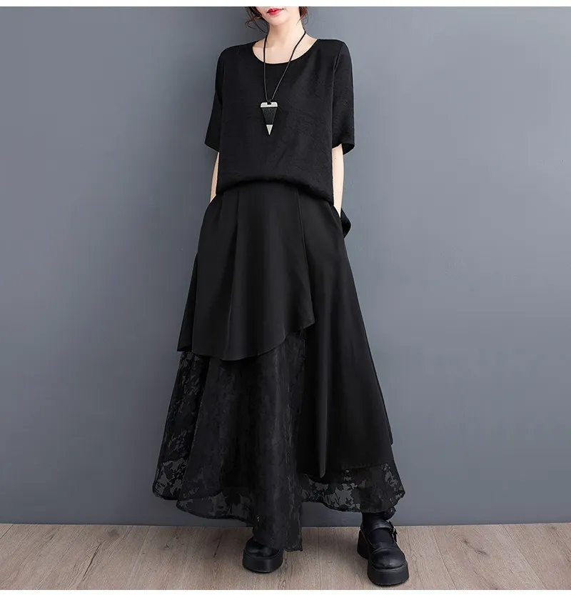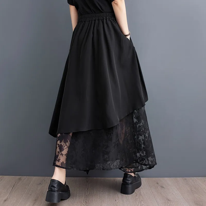 衣都精品- 新款韓版寬鬆大碼時尚蕾絲鬆緊腰半身裙