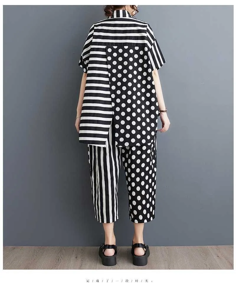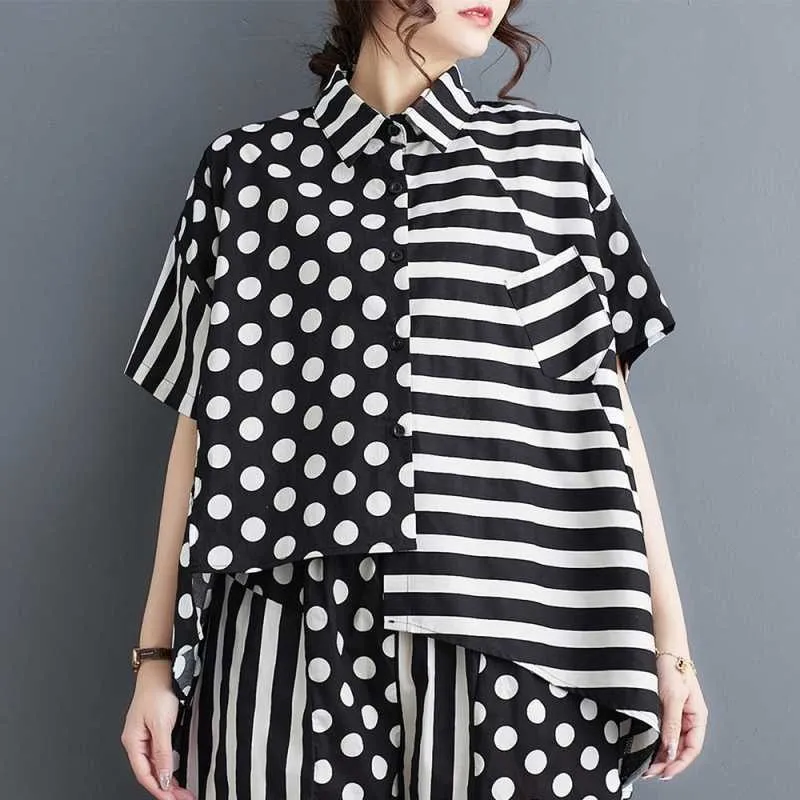 衣都精品- 新款韓版大碼短袖拼色波點上衣