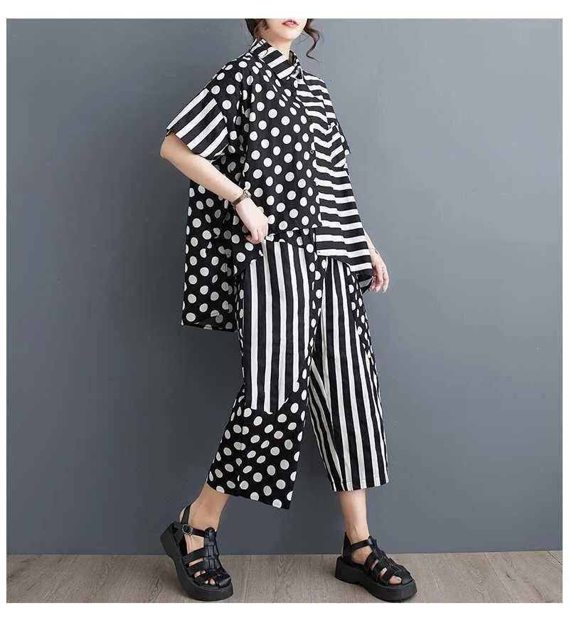 衣都精品- 新款韓版寬鬆大碼波點九分哈倫褲