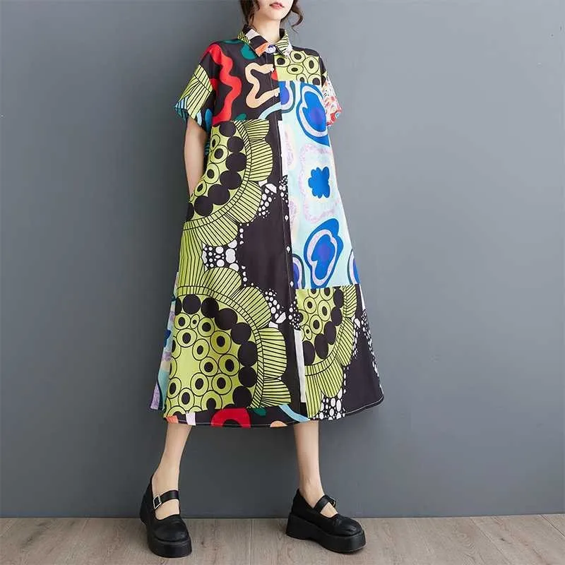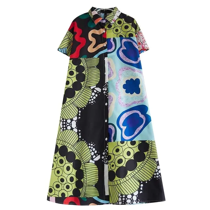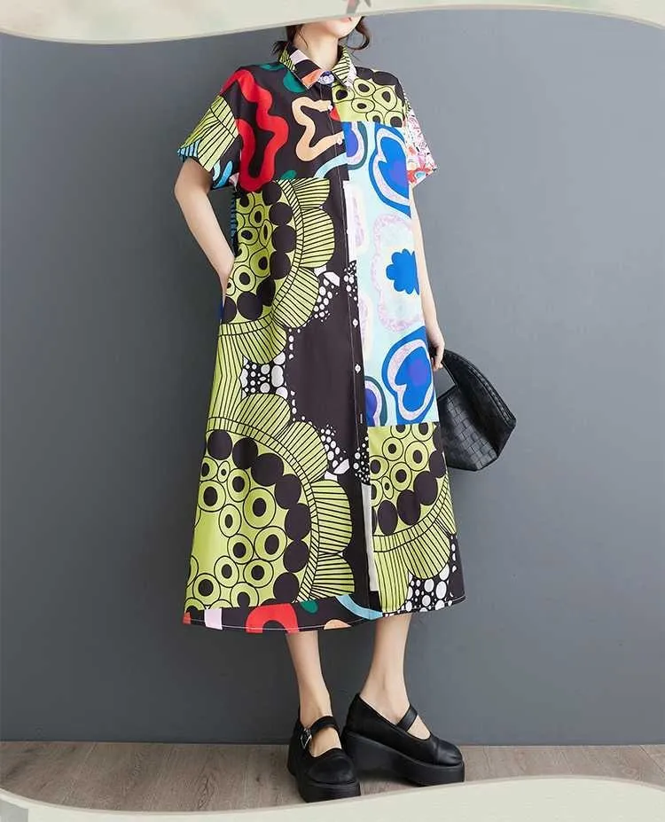 衣都精品- 新款韓版寬鬆大碼印花拼接短袖連衣裙