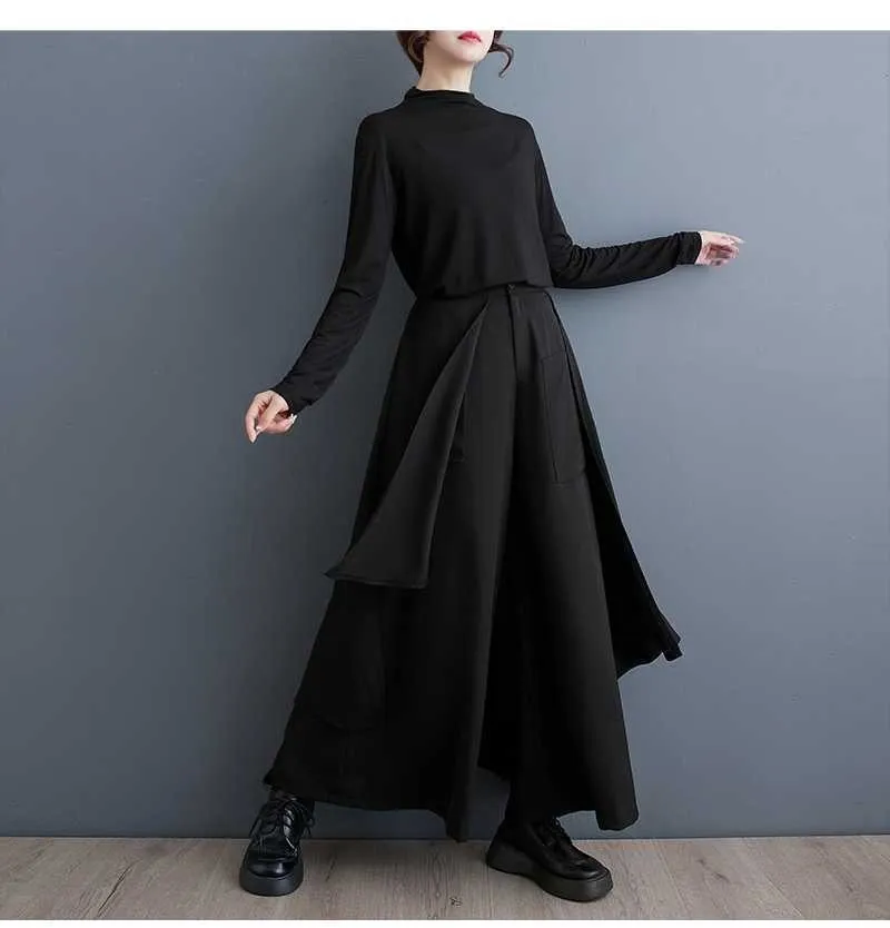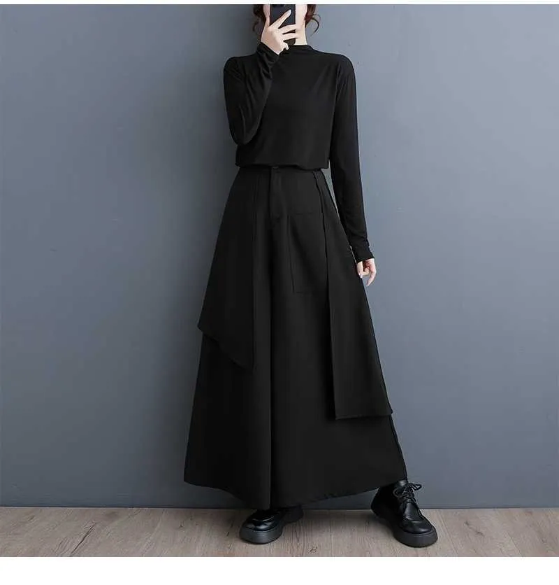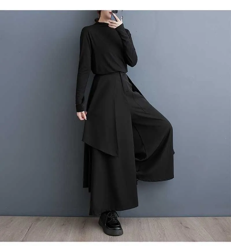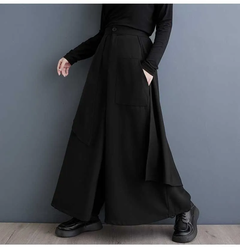 衣都精品- 新款韓版大尺碼寬鬆拼接不規則闊腿褲