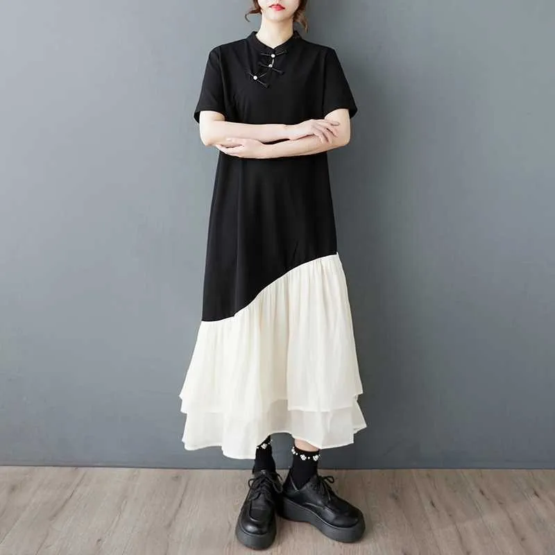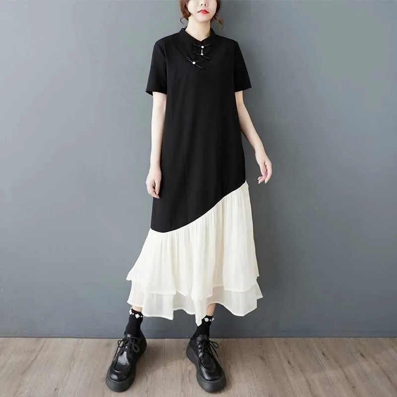 衣都精品- 新款韓版寬鬆大尺碼印花拼接短袖連衣裙