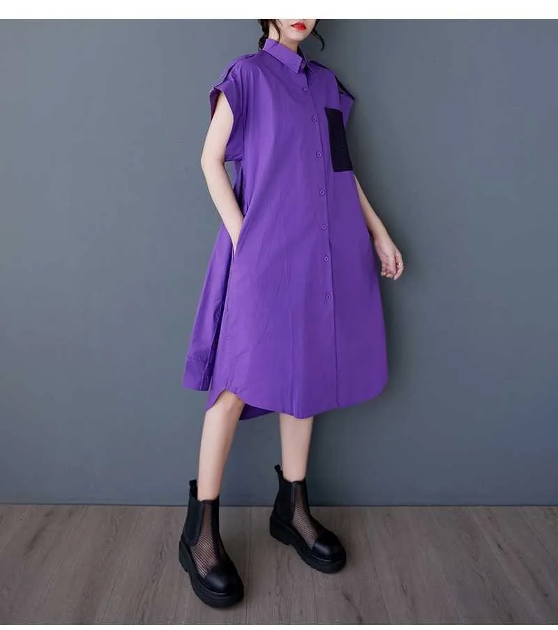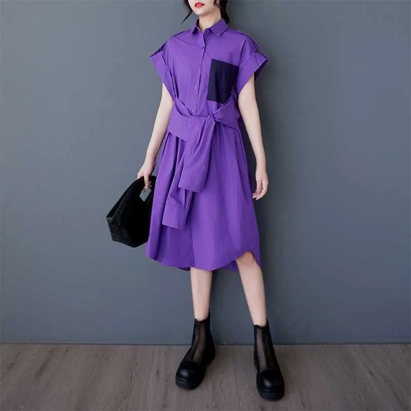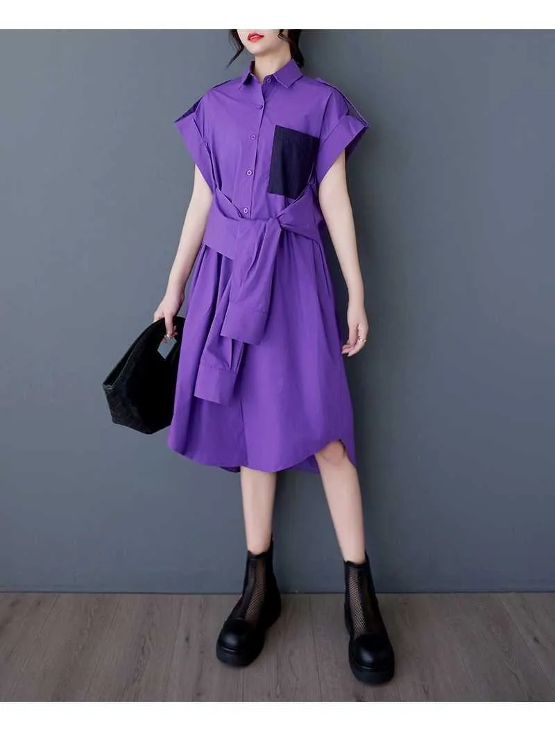 衣都精品- 新款韓版大碼寬鬆個性繫帶收腰連衣裙