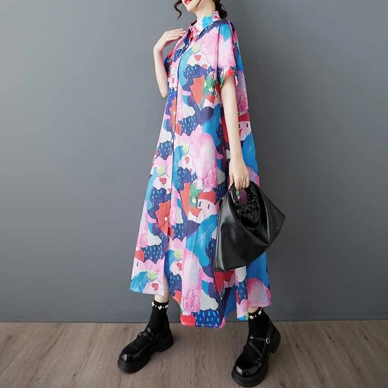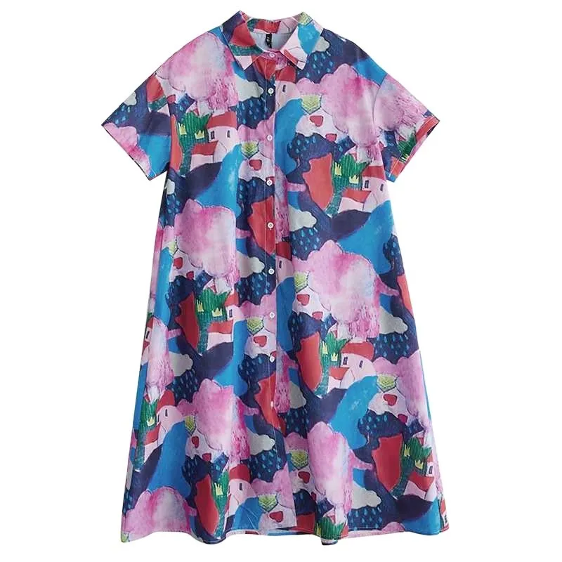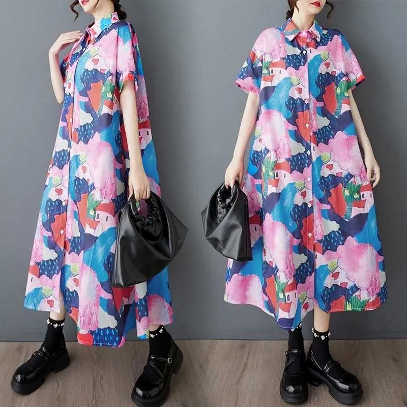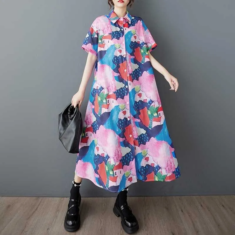 衣都精品- 新款韓版短袖寬鬆大碼時尚印花連衣裙