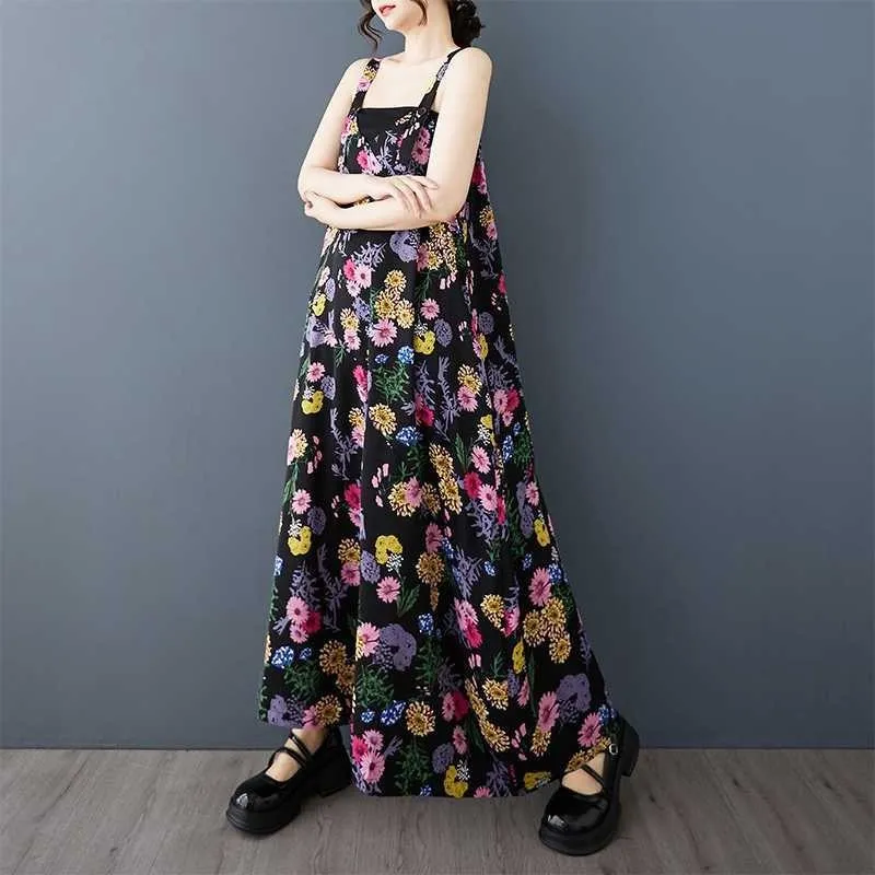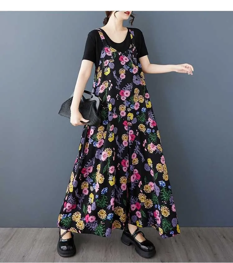 衣都精品- 新款大碼復古碎花寬鬆顯瘦背帶寬褲