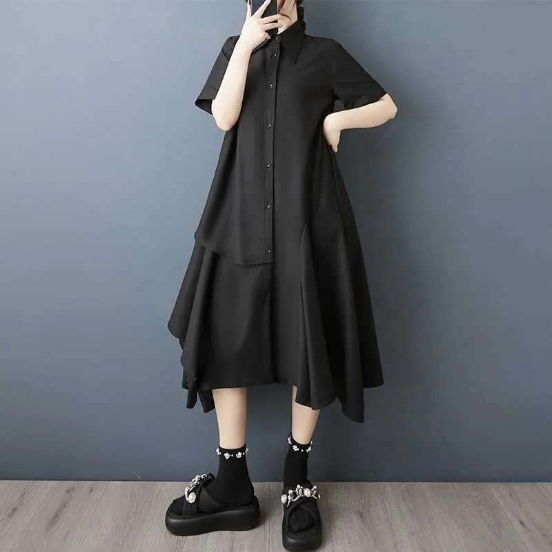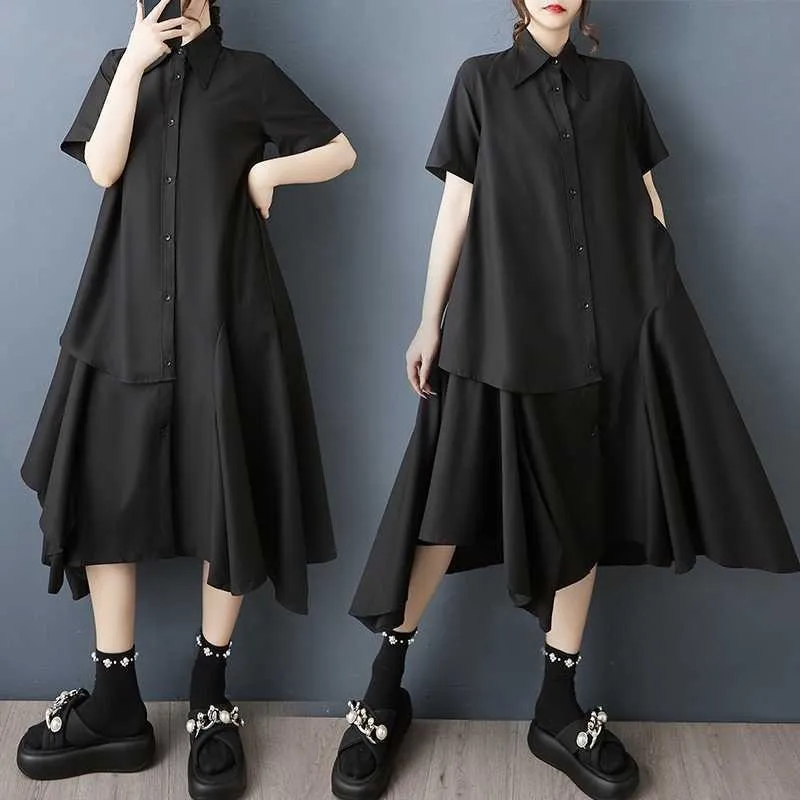 衣都精品- 新款韓版寬鬆大碼拼接短袖連衣裙